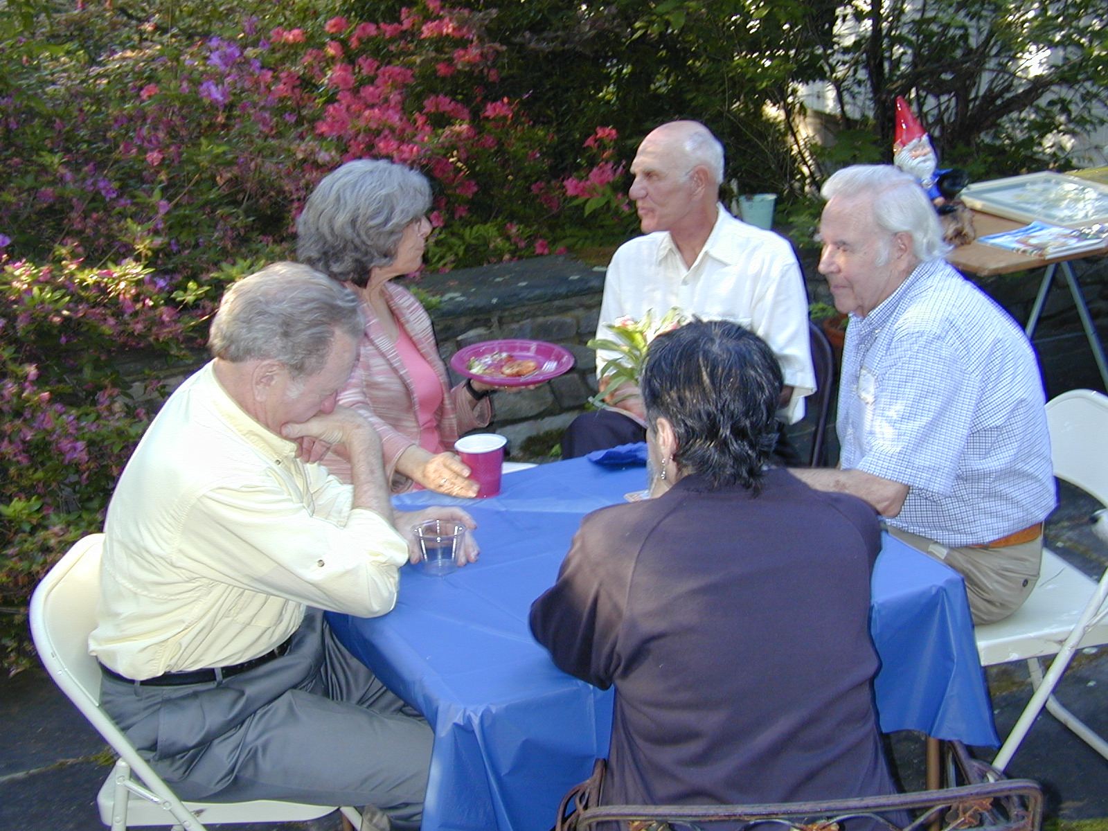 Once again we met at Dotty's for the party. The weather was absolutely perfect! Coach Stone came by, and looked great. The raffle and silent auction went great and was a lot of fun. Thanks to the generous and talented classmates that donated their creations. More details on the raffle and auction elsewhere. We had a guest from the class of 1960, Phil Leonard. We were all glad to see him, and I hope he had a great time. Paul Larkin attended from the class of 1961.